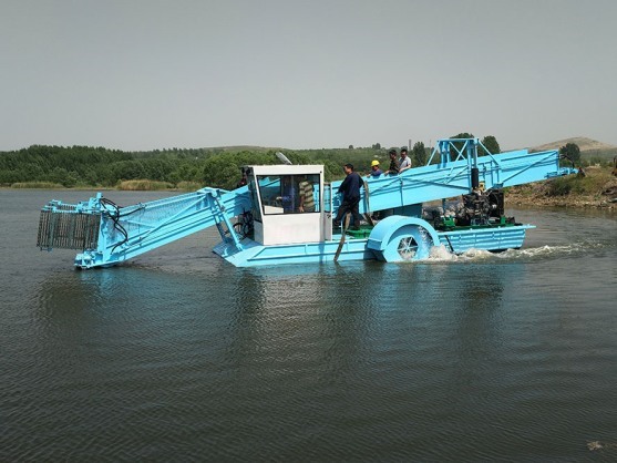 水草割草船,又称环保割草船, 是一种集割草、聚拢、打捞、滤水、输送、卸载等于一体的现代化水草、水葫芦收割设备。所有操作程序采用全液压控制,简单、方便、灵活,是城市水面景区不可缺少的。
